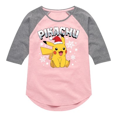 Girls' - Pokémon - Champ Pikachu Shy Shirt Tail Raglan Graphic T-shirt