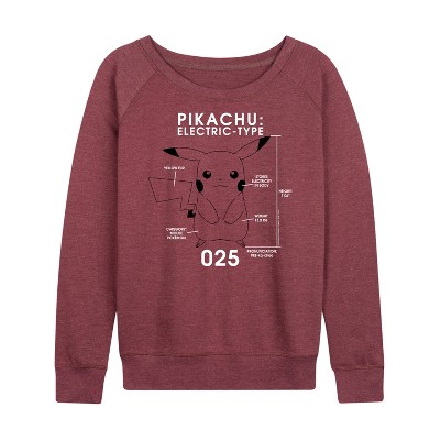 Women's - Pokémon - Pikachu Electric-Type Lightweight French Terry Wide Neck Long Sleeve Graphic Shirt