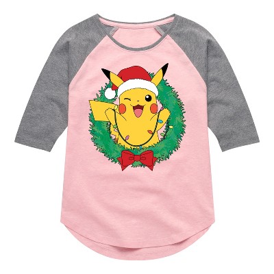 Girls' - Pokémon - Pikachu Lights Wreath Shirt Tail Raglan Graphic T-shirt