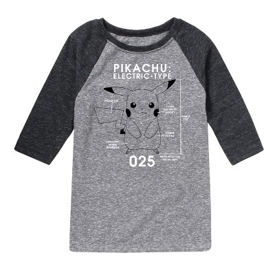 Boys' - Pokémon - Pikachu Pokedex Diagram Raglan Graphic T-Shirt