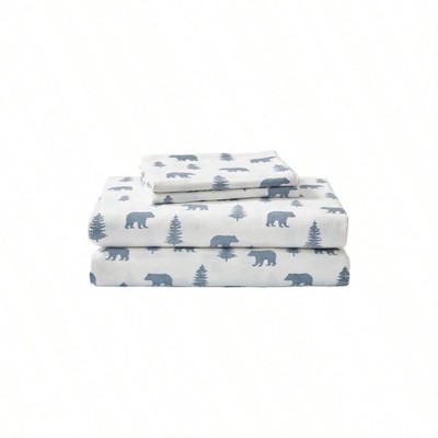 King Size Flannel Sheets, Anti - Pilling Wrinkle Resistant, Soft Cotton with Bears and Trees Design, Includes Pillowcases Fitted Sheet