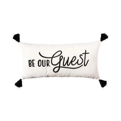 C&F Home Decorative "Be Our Guest" Cursive Script Embroidered Accent Pillow, 12" x 24" w/ Black Tassels