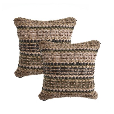 HomeRoots Set of Two 18" Brown and Dark Green Striped Cotton Blend Throw Pillows with Texture