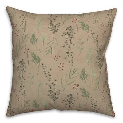 Creative Products Pine Greenery on Brown 18 x 18 Spun Poly Pillow