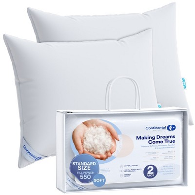 Continental Bedding - 550 Fill Power Soft Duck Down Pillow - Size - Set of 2