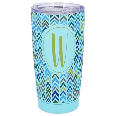 Elanze Designs W Monogram Herringbone Arrows Wrap-Around Design 20 Ounce Stainless Steel On-The-Go Coffee Mug, Thermal Travel Tumbler with Leak