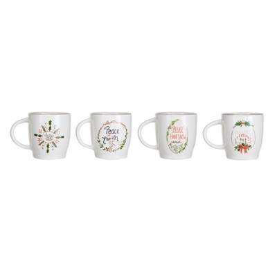 Storied Home Round Hand-Painted Stoneware Mug with 4 Various Holiday Sayings , Multicolor, Set of 12