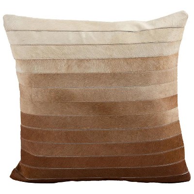 Cowhide Decorative Cushion Brown Ombre Strip Design – Leather Accent by Auskin