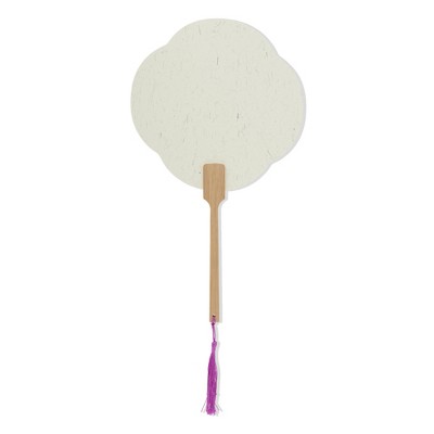 Unique Bargains Portable Double-Sided Long Handle Round Four-Petal Folding Fan 1 Pc