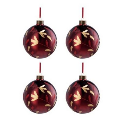 SEVOBAL D4.7" Party Decorations and Accessories Decorative Set of 4 Glass Ball Ornaments Set for Holiday Tree Decor, Red, 4.7"*4.7"*4.7"