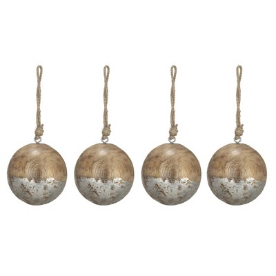 NAYSAYE Party Decoration and Accessories Set of 4 Wood Christmas Ball Hanging Ornament for Holiday Celebration, Brown, 4"*4"*4"