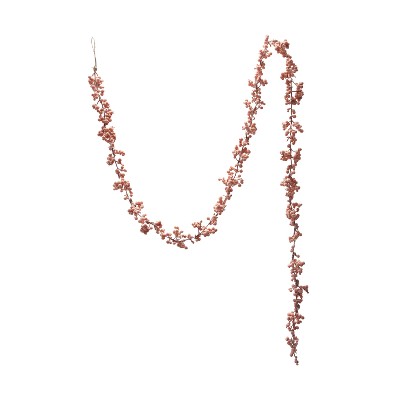 Storied Home Flocked Foam Ball Garland with Berries, Pink