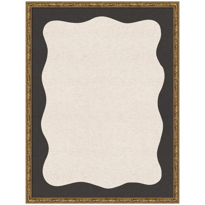 Kate and Laurel Framed Fabric Pinboard Wavy Linen Light and Black Wall Organization, 19x25, Belvedere Bronze
