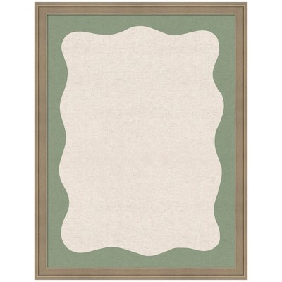 Kate and Laurel Framed Fabric Pinboard Wavy Neutral Linen and Green Wall Organization, 20x26, Florence Light Brown