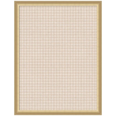 Kate and Laurel Framed Fabric Pinboard Mini Gingham Neutral Linen Wall Organization, 20x26, Florence Medium Brown