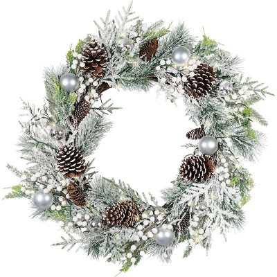 Red Co 30" Artificial Christmas Wreath Decorated Pine Cones LEDs Battery Silver