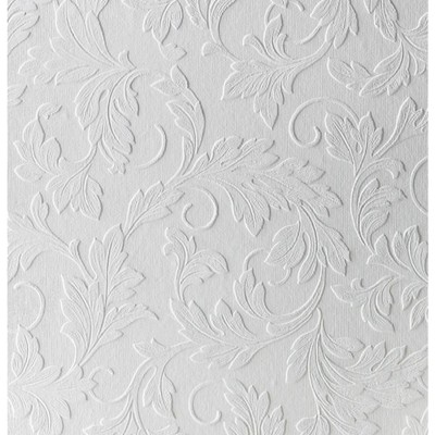 Large Scrolling Leaf White Paintable Wallpaper