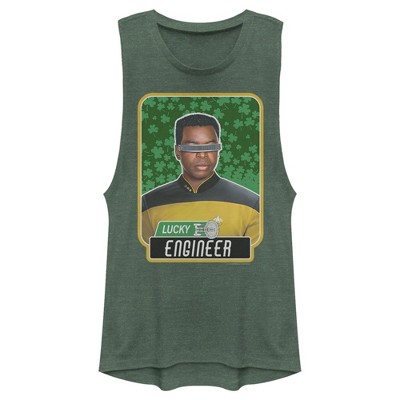 Juniors Womens Star Trek: The Next Generation St. Patrick's Day Lucky Engineer La Forge Festival Muscle Tee