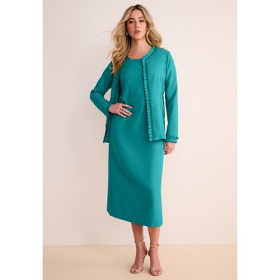 Roaman's Plus Size Long Sleeve Pleated Jacket Dress Set – Elegant 2-Piece Sheath Suit