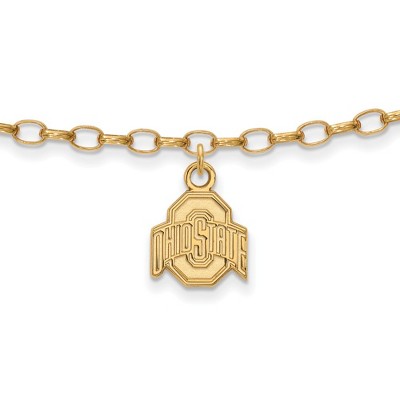 Black Bow Jewelry 14k Yellow Gold Plated Sterling Silver Ohio State Buckeyes NCAA Anklet 9 Inch