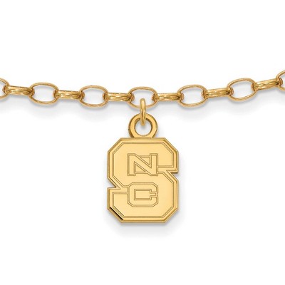 Black Bow Jewelry 14k Yellow Gold Plated Sterling Silver North Carolina State Wolfpack NCAA Anklet 9 Inch