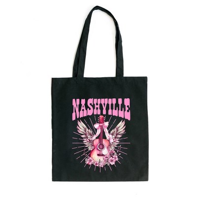 City Creek Prints Coquette Nashville Guitar Canvas Tote Bag - 15x16 - Black