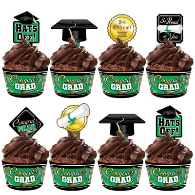 Treasures Gifted Green Graduation Cupcake Toppers & Green Graduation Cupcake Wrappers