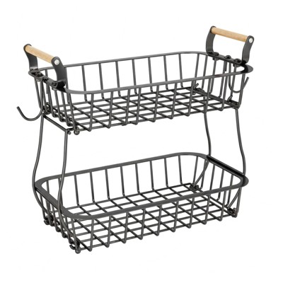 Aoibox 2-Tier Fruit Basket with Banana Hangers, Countertop Storage for Fruits, Vegetables, Bread, Snacks, and More - Sturdy Metal Wire Organizer