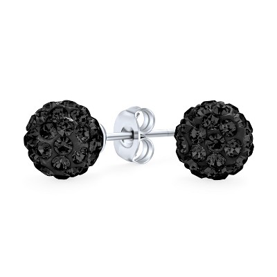 Bling Jewelry Elegant .925 Sterling Silver Round 8MM Glittering Pave Crystal Disco Ball Stud Earrings