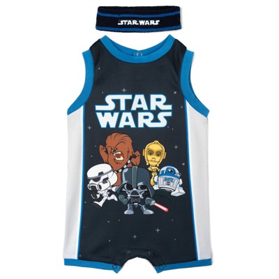 STAR WARS Mesh Basketball Athletic Romper and Sweatband Outfit Set Newborn to Infant