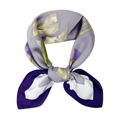 Wrapables Satin Neckerchief Square Scarf 26.5 x 26.5 Inches, Lavender Irises