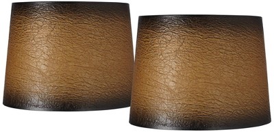 Springcrest Collection Set of 2 Drum Lamp Shades Distressed Crackle Medium 13" Top x 15" Bottom x 10" Slant Spider Replacement Harp and Finial Fitting