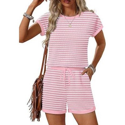 20"x34" Sea Shells Striped Reversible Accent Rug Pink/White - Sun Squad™
