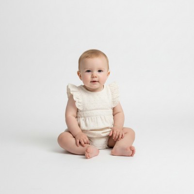 Organic Eyelet Flutter Romper- Ivory Eyelet