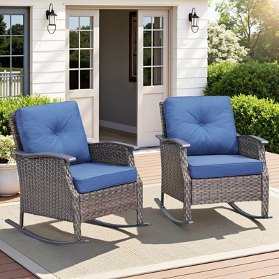 Gymojoy Patio Rocking Chair Wicker Chair, Outdoor Rocking Chair Seating with 4-in Thick Cushions for Porch Deck Balcony