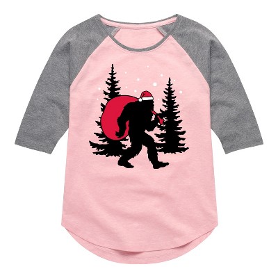 Girls' - Instant Message - Sasquatch Santa Shirt Tail Raglan Graphic T-shirt
