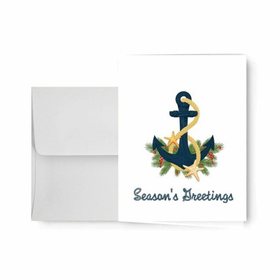 Paper Frenzy Nautical Coastal Anchor Christmas Holiday Cards with White Envelopes - 25 pack