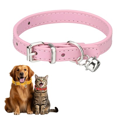 Unique Bargains Dog Collar with Bell Adjustable Buckle PU Leather Dog Collars