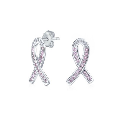 Bling Jewelry Strength and Hope Elegant Fine Pave Cubic Zirconia CZ Pink Ribbon Breast Cancer Survivor Stud Earrings Sterling Silver