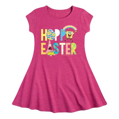 Girls' - SpongeBob Squarepants - Hoppy Easter Fit & Flair Cap Sleeve Graphic Dress