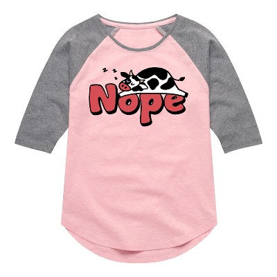 Girls' - Instant Message - Nope Sleeping Cow Shirt Tail Raglan Graphic T-shirt