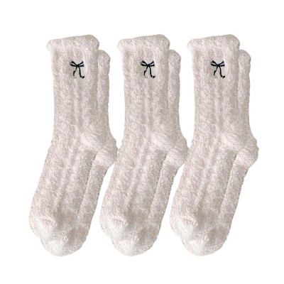 Anna-Kaci Women's 3-Pack Fuzzy Crew Socks with Embroidered Bow Detail and Soft Plush Texture