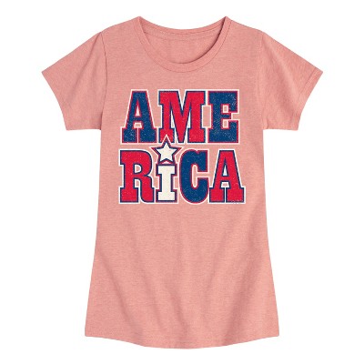 Girls' - Instant Message - America Red White and Blue Stacked Fitted Short Sleeve Graphic T-Shirt