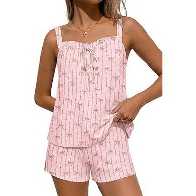 Ekouaer Womens Pajamas Sets 2 Piece Cute Tank Top and Shorts Lounge Set Sleeveless Pjs Set Sweet Sleepwear