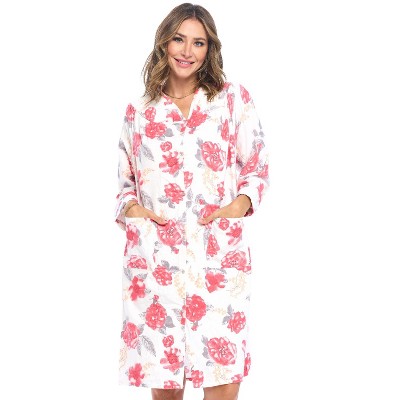 Casual Nights Women's Floral Snap Front Flannel Duster Long Sleeve Lounger Dress