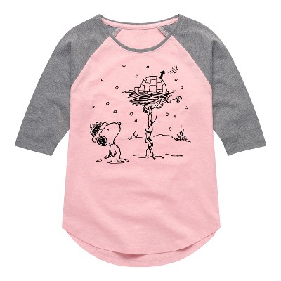 Girls' - Peanuts - Snoopy Woodstock Igloo Shirt Tail Raglan Graphic T-shirt