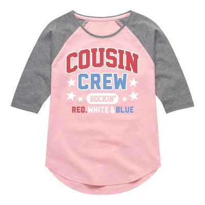 Girls' - Instant Message - Cousin Crew Red White Blue Shirt Tail Raglan Graphic T-shirt