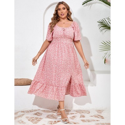 Plus Size Summer Dress for Women Square Neck Casual Boho A Line Maxi Dress
