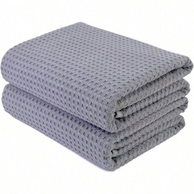 Microfiber Oversize Quick Dry Lint Free Bath Towel, 60x30in, Set of 2 Gray, Waffle Weave