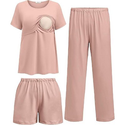 JEFFRICO Pajamas For Women 2 Pack Capri Set Sleepwear Soft Pajamas Short Sleeve Pajamas Sleepshirt With Capri Pants Pink Purple, XL